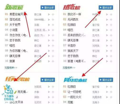 不少,尤其是新歌榜,热歌榜,经典老歌榜和网络歌曲榜这四个板块,可以说是