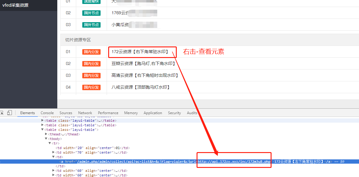 获取接口地址:想要那个资源接口就在那个资源接口那里,右击-查看元素,就能看到接口地址。